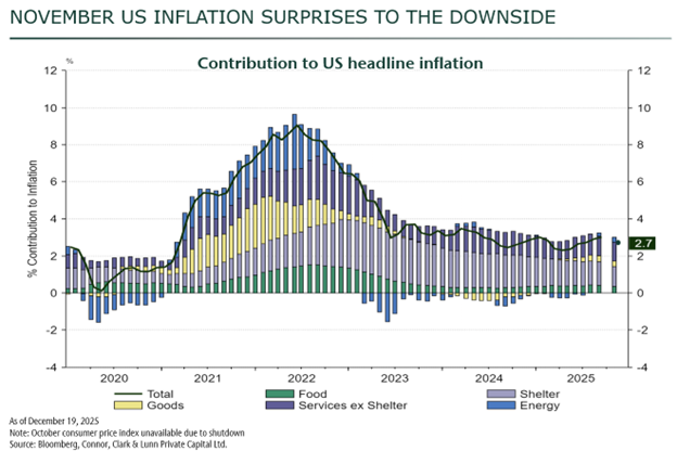 This week’s US inflation data for November was lower than expected. On the surface this is a good thing. However, we think this is more noise than signal and are hesitant to put too much weight into this decline. The reason is that the US government
